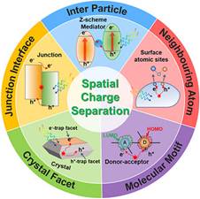空间电荷分离是人工光合作用中的基本过程之一,对决定太阳能转换效率起着关键作用,利用电荷分离作用力驱动光生电子与空穴的空间分离可有效提升电荷分离效率。论文综述人工光合作用空间电荷分离策略的最新进展,涵盖从宏观颗粒尺度到微观原子尺度的不同层面,有望为理解不同尺度下空间电荷分离的内在机制提供有益启示,并为光催化剂表面与结构的精准设计提供指导。(通讯员 连菊红 审核人 杨珊)